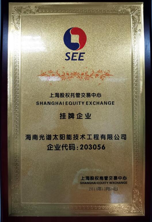 海南光譜節(jié)能環(huán)保科技有限公司成立于2001年,注冊資本1018萬元人民幣,是一家專業(yè)的太陽能、中央空調(diào)工程技術(shù)系統(tǒng)集成商。2014年12月24日,我司在上海股權(quán)托管交易中心成功掛牌,上股交代碼為:203056。