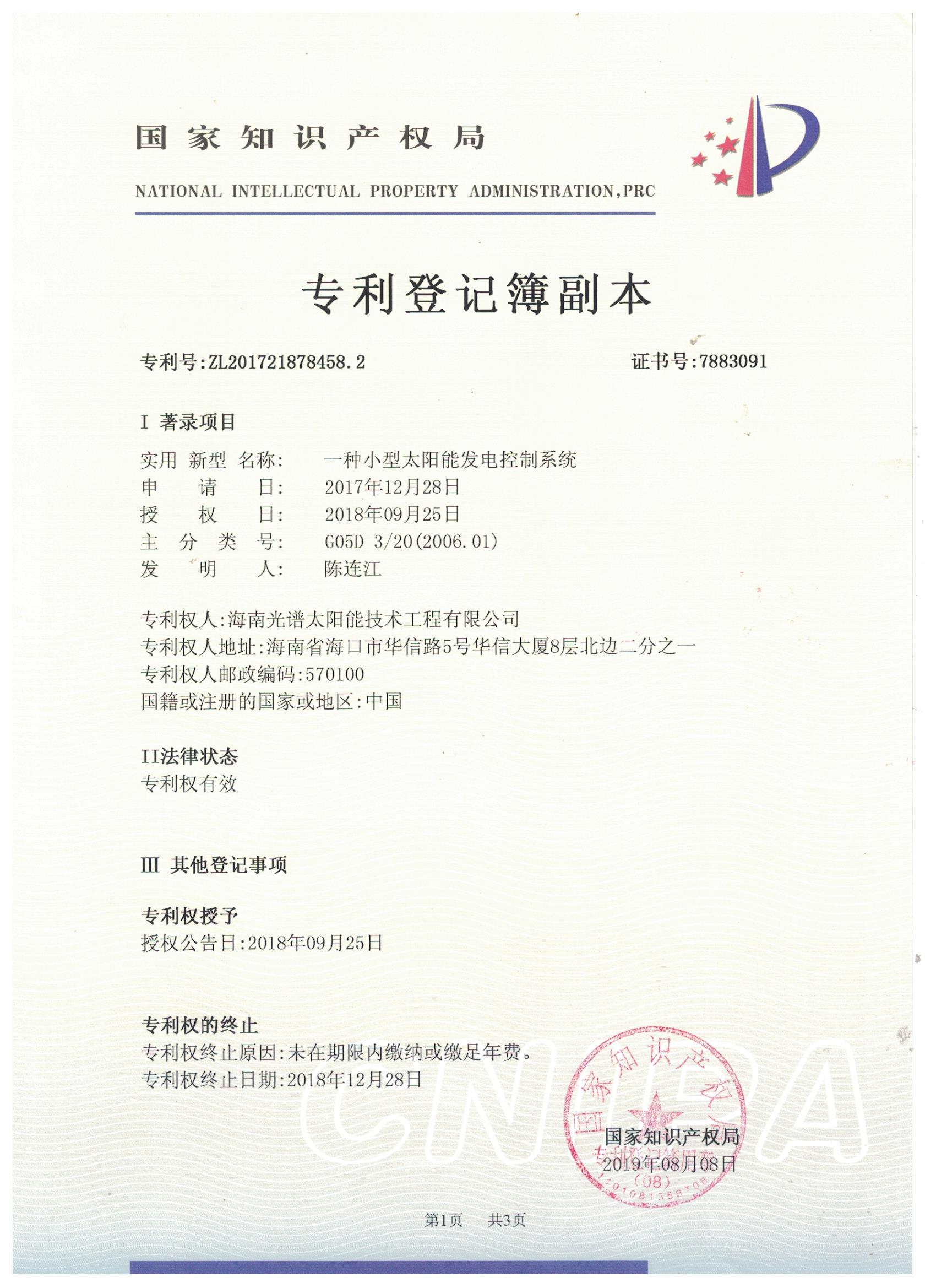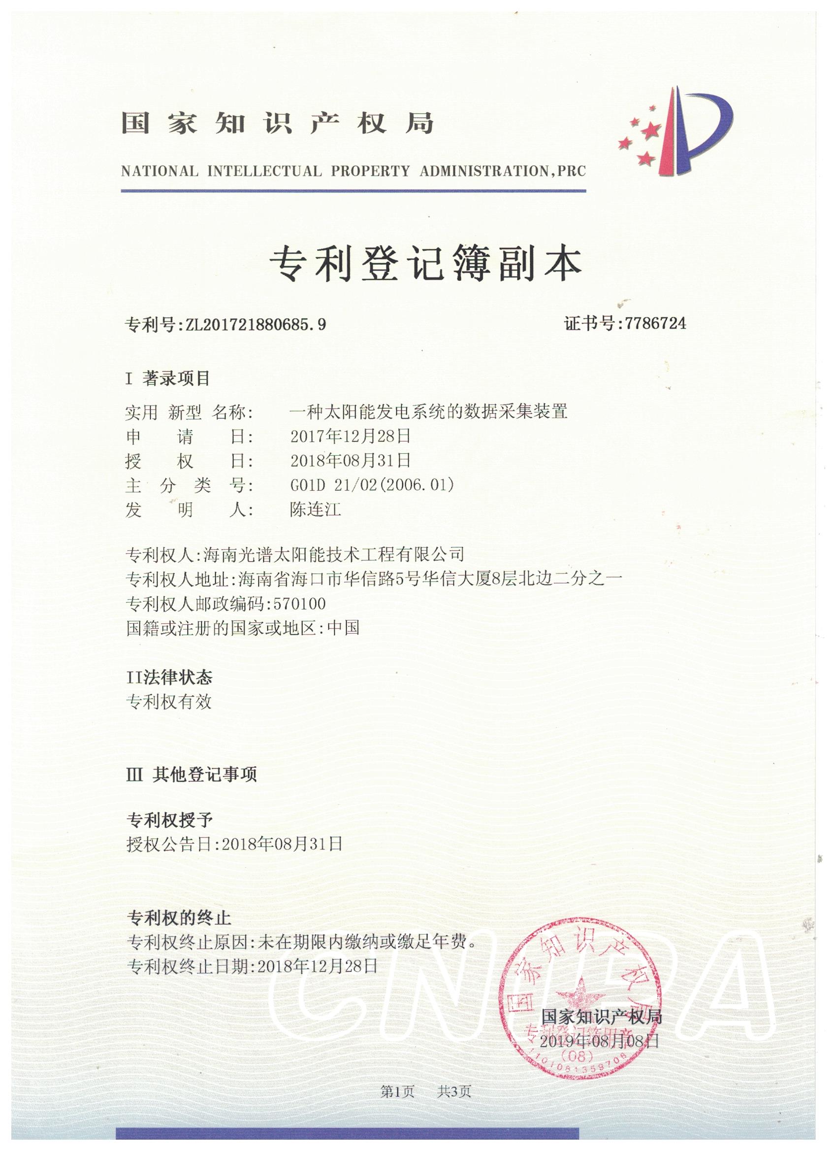 【喜報(bào)】熱烈祝賀海南光譜公司榮獲國家發(fā)明專利授權(quán),技術(shù)實(shí)力獲認(rèn)可!