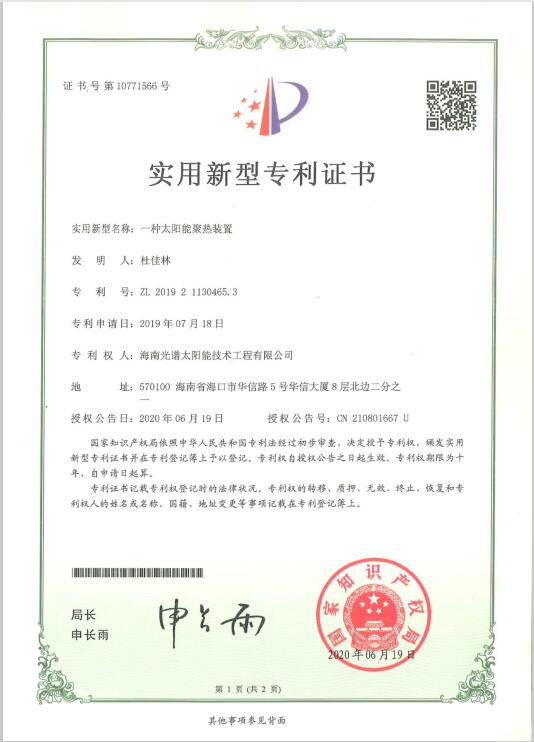 近日,我司申報(bào)的“一種太陽能熱泵蒸汽發(fā)生裝置”發(fā)明專利通過審查,獲得國家知識(shí)產(chǎn)權(quán)局授予的發(fā)明專利證書,授權(quán)專利號(hào)為“ZL201911126309.4”。 此次獲得國家頒發(fā)的專利證書,是對(duì)海南光譜公司創(chuàng)新實(shí)力的認(rèn)可,代表著我司知識(shí)產(chǎn)權(quán)取得了突破性進(jìn)展,為公司的持續(xù)性發(fā)展提供強(qiáng)有力的科技創(chuàng)...